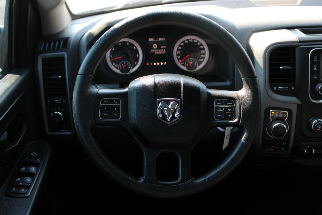 This RAM 1500 is not just tough, it's also comfortable and convenient. The interior features manual air conditioning, cruise control, and a user-friendly dashboard with all the essential gauges. Plus, with the available Carfax report, you can drive with confidence knowing the vehicle's history. So why wait? Come test drive this impressive truck today and experience the power and reliability of a Black 2015 RAM 1500 for yourself!