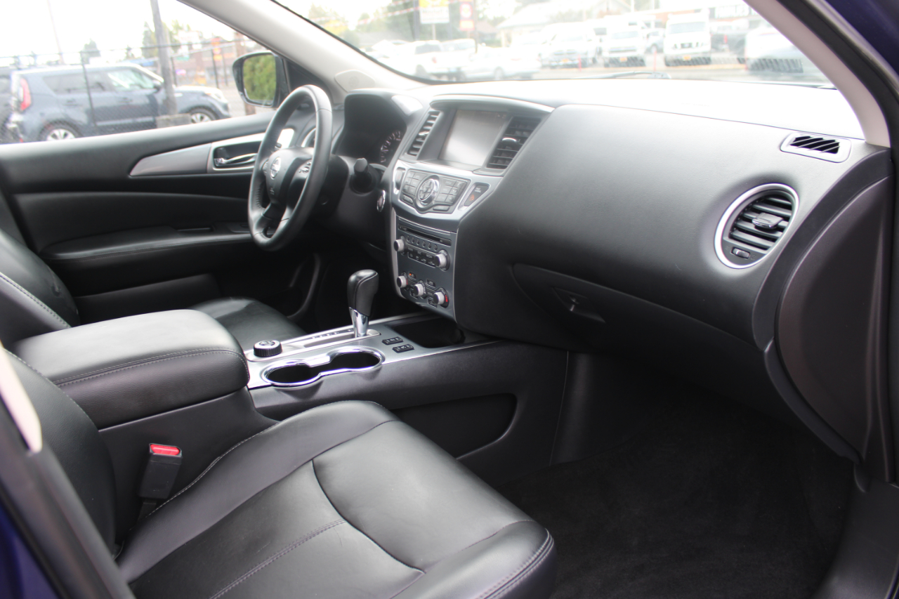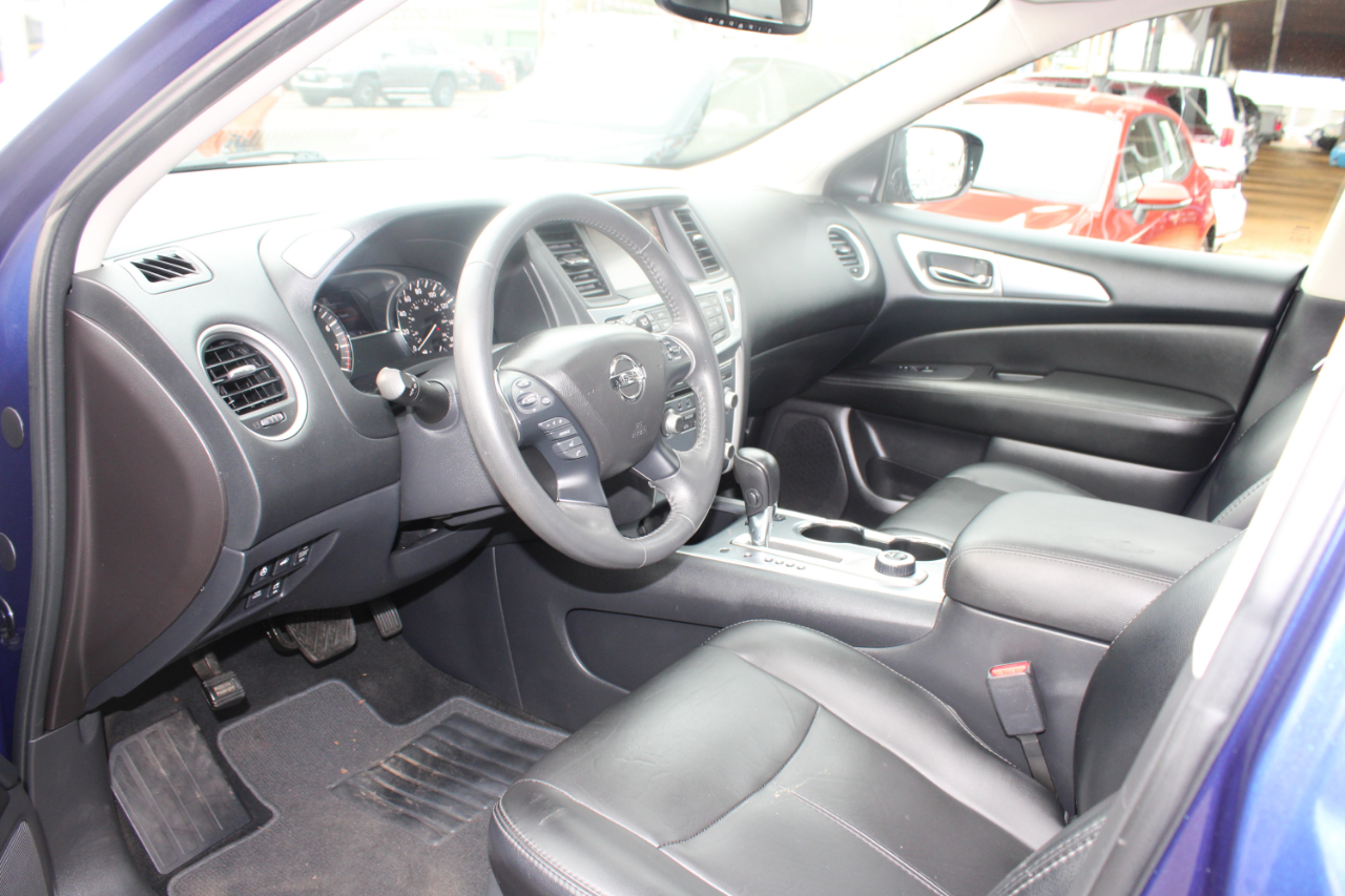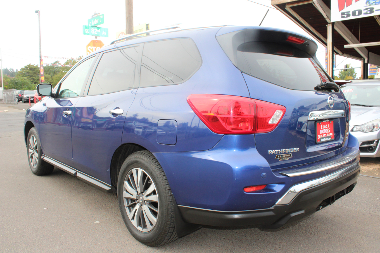 Hop into this sleek and sporty Blue 2017 Nissan Pathfinder! With a powerful 3.5L DI V6 engine and XTRONIC CVT transmission, this dynamic SUV is ready for any adventure. Equipped with four-wheel drive capabilities, hill descent control, and brake assist technology, this vehicle is a reliable companion on and off the road. The striking exterior features 18" machined alloy wheels, fog lamps, and a power liftgate for added convenience.