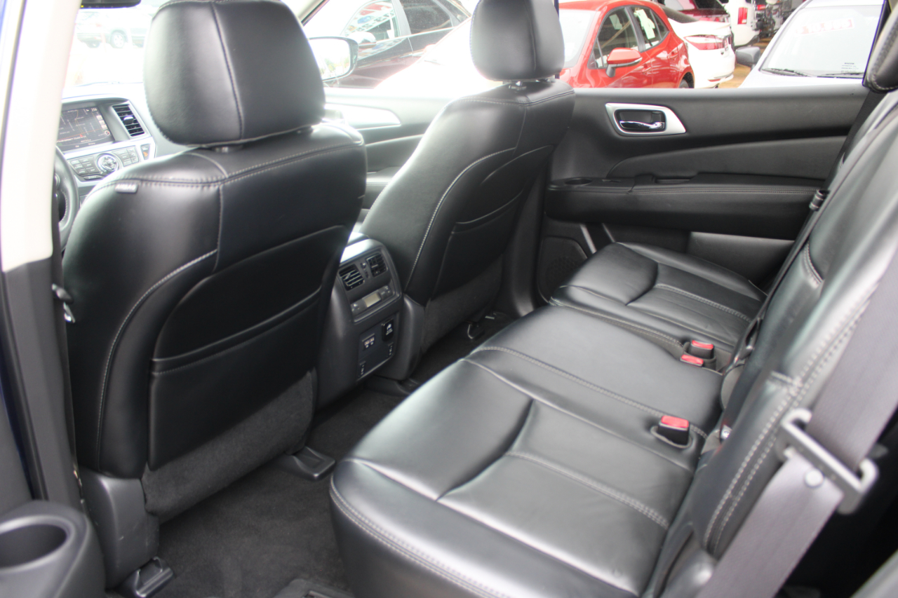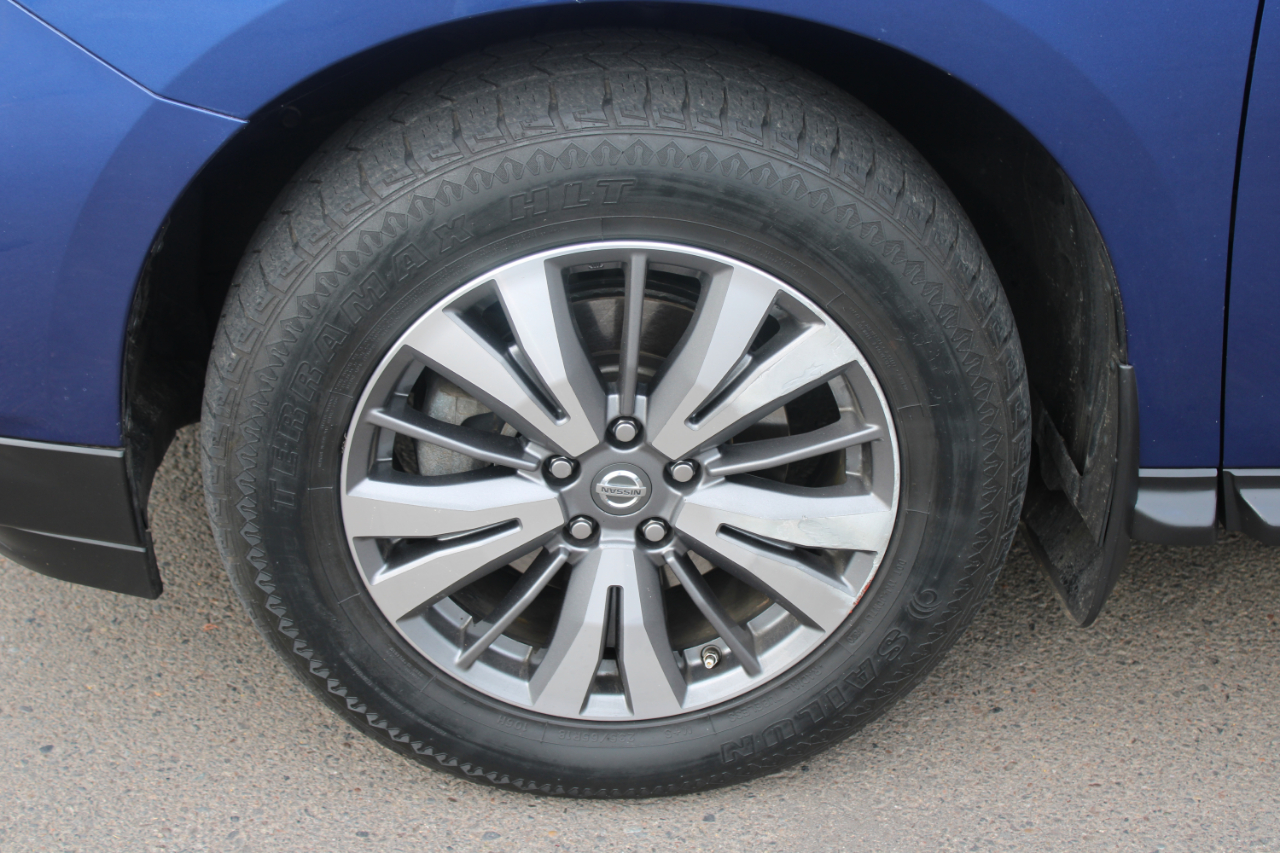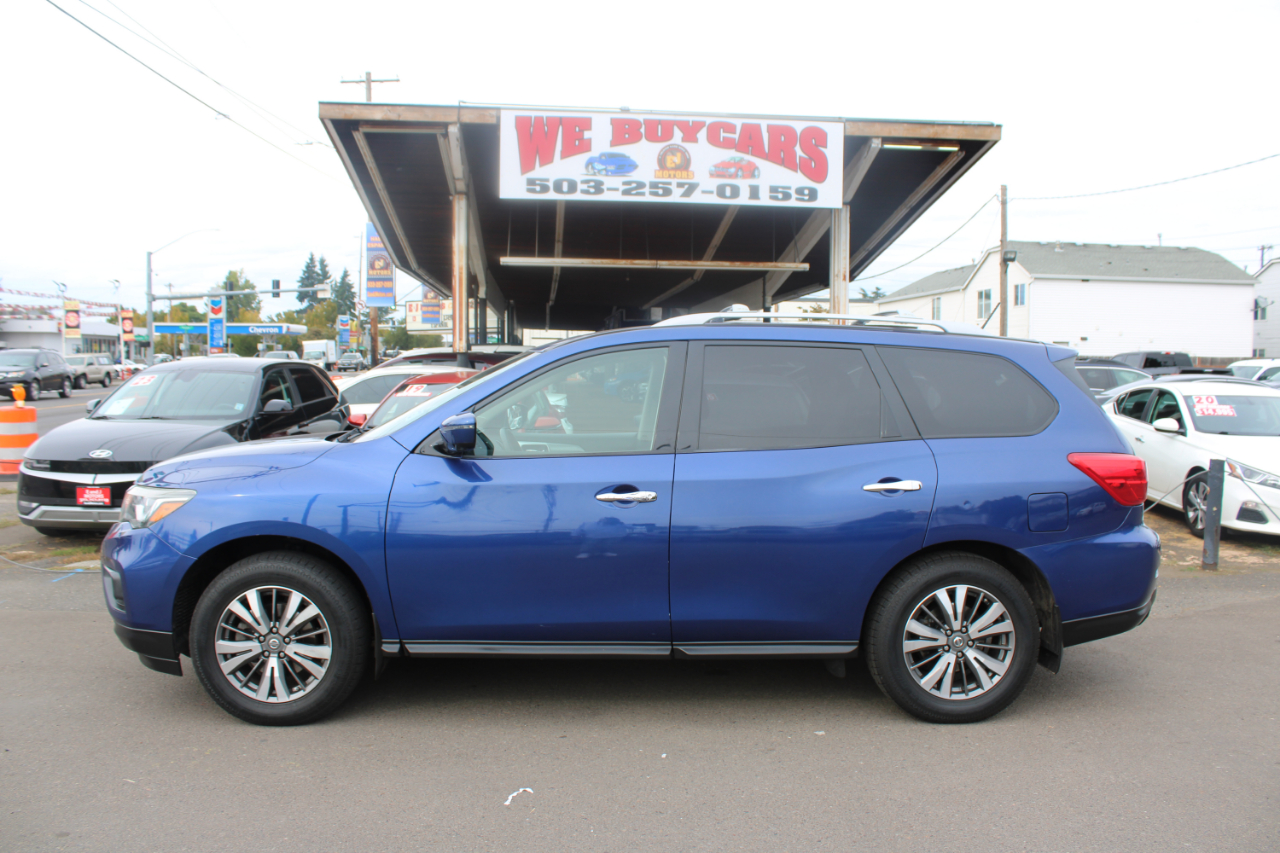 Hop into this sleek and sporty Blue 2017 Nissan Pathfinder! With a powerful 3.5L DI V6 engine and XTRONIC CVT transmission, this dynamic SUV is ready for any adventure. Equipped with four-wheel drive capabilities, hill descent control, and brake assist technology, this vehicle is a reliable companion on and off the road. The striking exterior features 18" machined alloy wheels, fog lamps, and a power liftgate for added convenience.