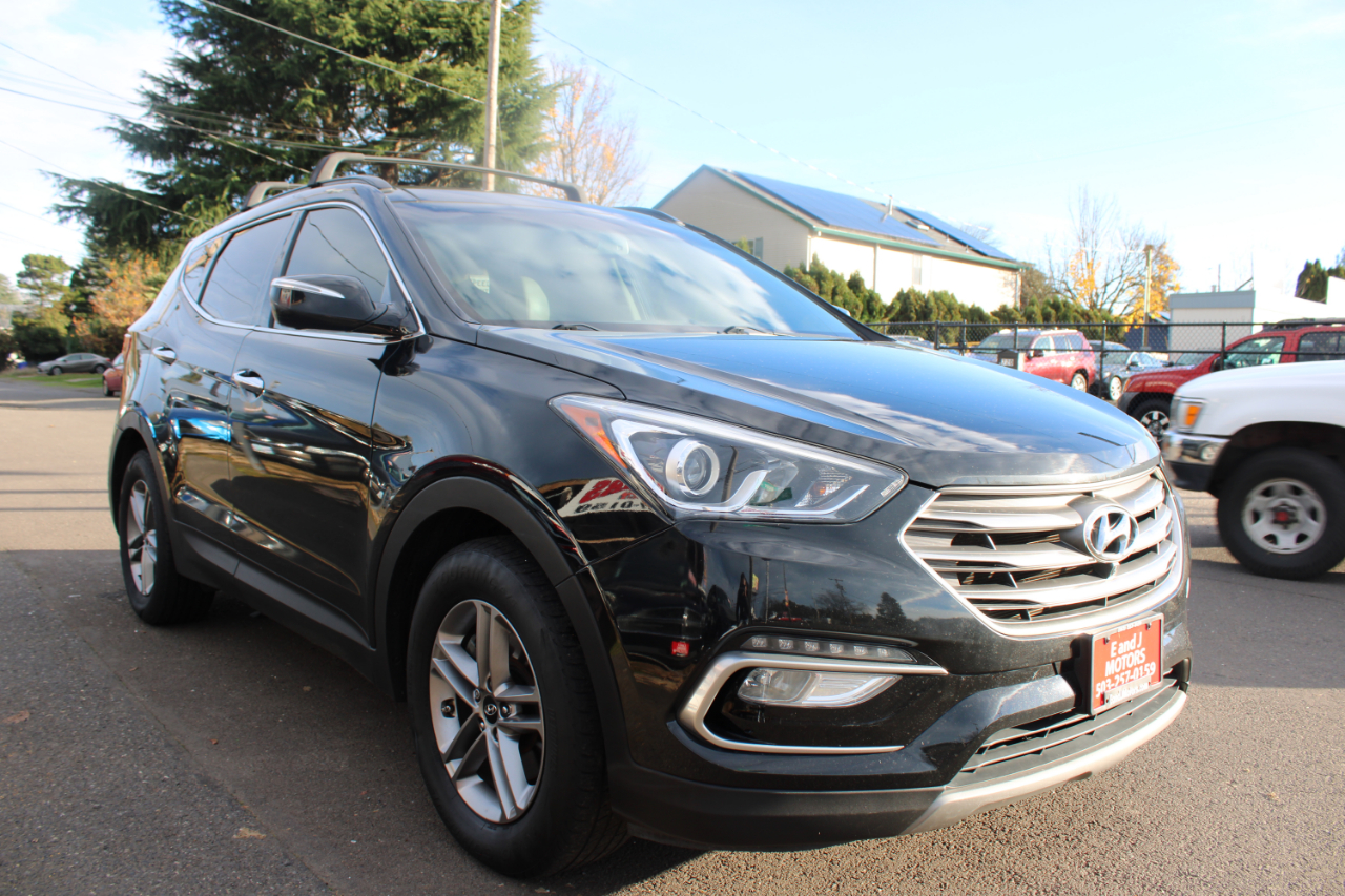 Get ready to hit the road in style with this sleek and reliable Black 2017 Hyundai Santa Fe Sport! This beauty is powered by a 2.4L GDI DOHC 16-Valve I4 engine paired with a smooth-shifting 6-Speed Automatic transmission, making every drive a pleasure. With its Automatic Full-Time All-Wheel Drive, you can tackle any terrain with confidence, while the Gas-Pressurized Shock Absorbers ensure a smooth ride every time.