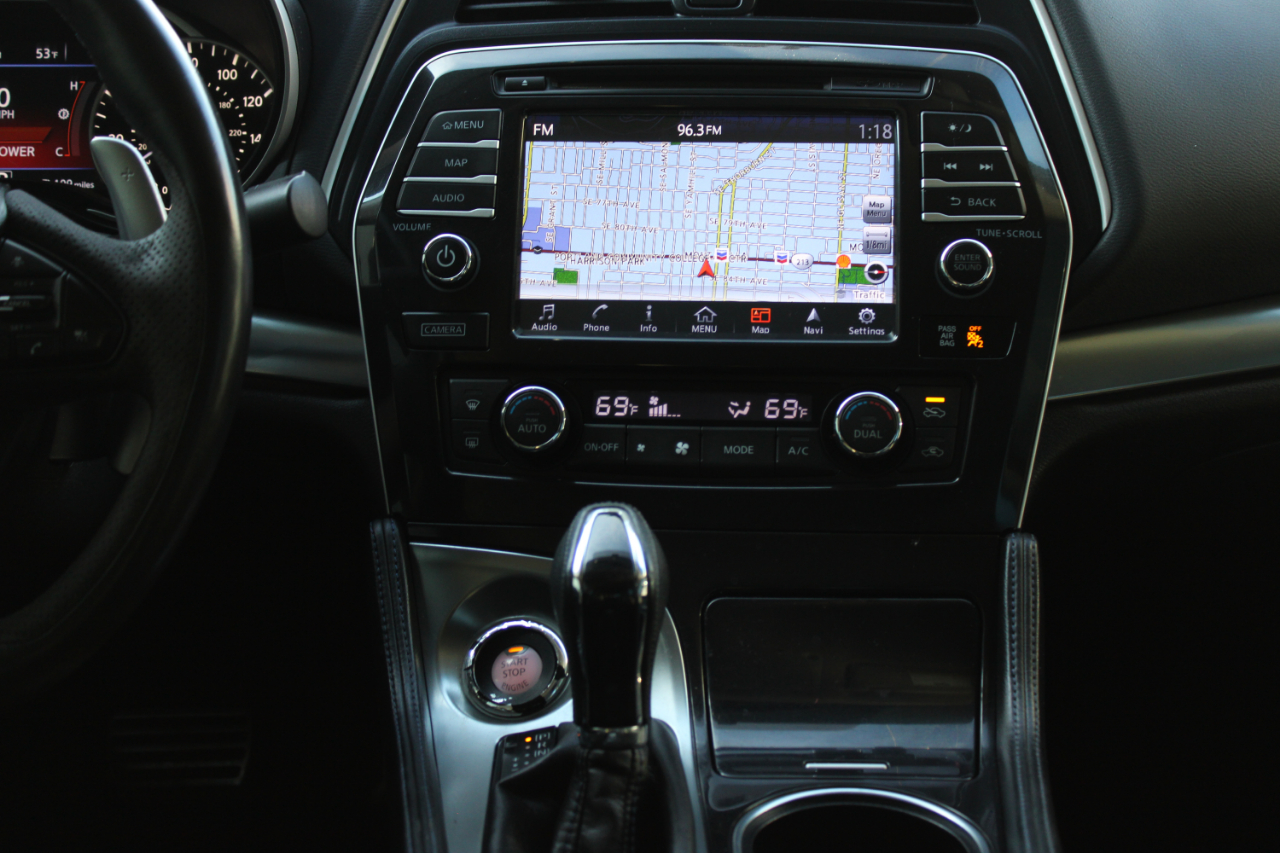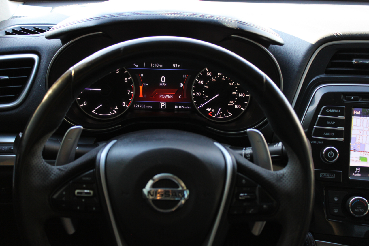 Even though Nissan bills the new Maxima as a "4-Door Sports Car," this is no budget-conscious BMW M3. Instead, it’s a sporty entry-level luxury sedan, and a pretty good one at that. The 3.5-liter V6 engine puts all of its 300 horsepower to the front wheels through a continuously variable automatic transmission. While CVTs aren’t everyone’s cup of tea, Nissan does a great job due in no small part to its "D-Step" shift logic, which simulates gear changes. The sportiest Nissan Maxima SR takes it a step further, using paddle shifters on the steering wheel to select different fixed settings in the continuously variable automatic transmission, further simulating a more traditional automatic. The suspension felt comfortably firm, and combined with the accurate-but-numb steering, the Maxima was enjoyable in brisk driving around Nashville. On the highway, the smooth ride and quiet interior are pure luxury sedan.