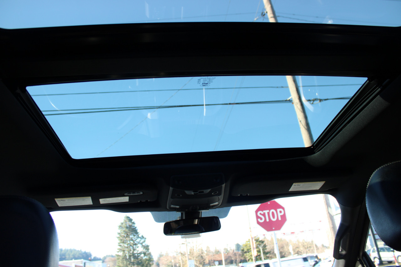 The White exterior is sleek and stylish, with aluminum panels and a cargo lamp for added convenience. Inside, you'll find plenty of space and comfort, with front and rear cupholders, multiple power outlets, and a handy compass. Safety is also a top priority, with side impact beams and a Safety Canopy System keeping you and your passengers protected.