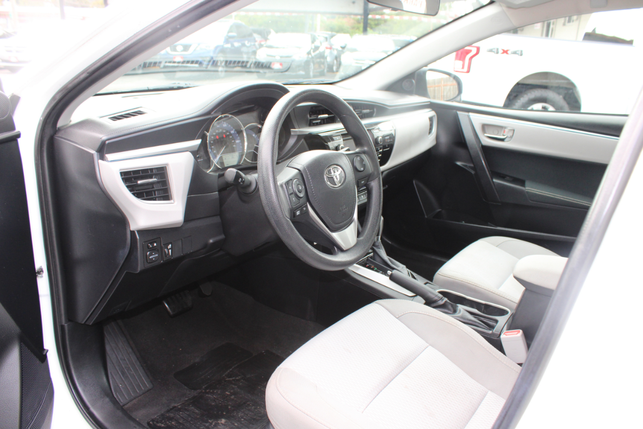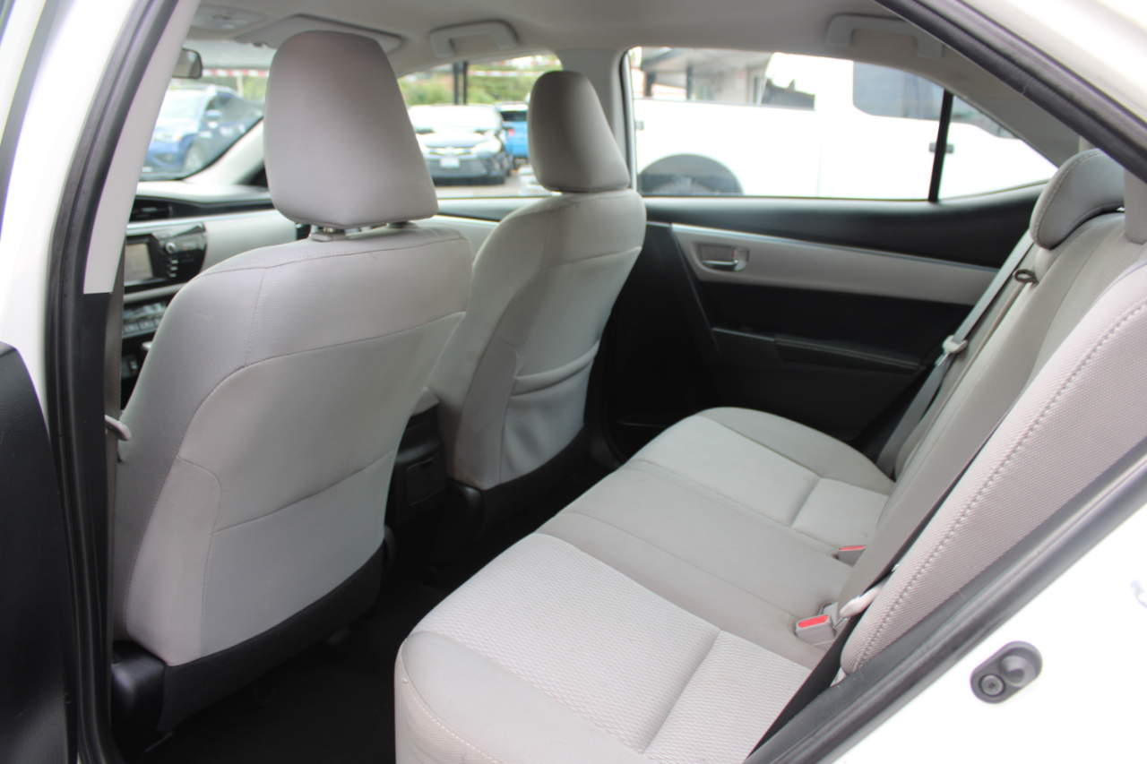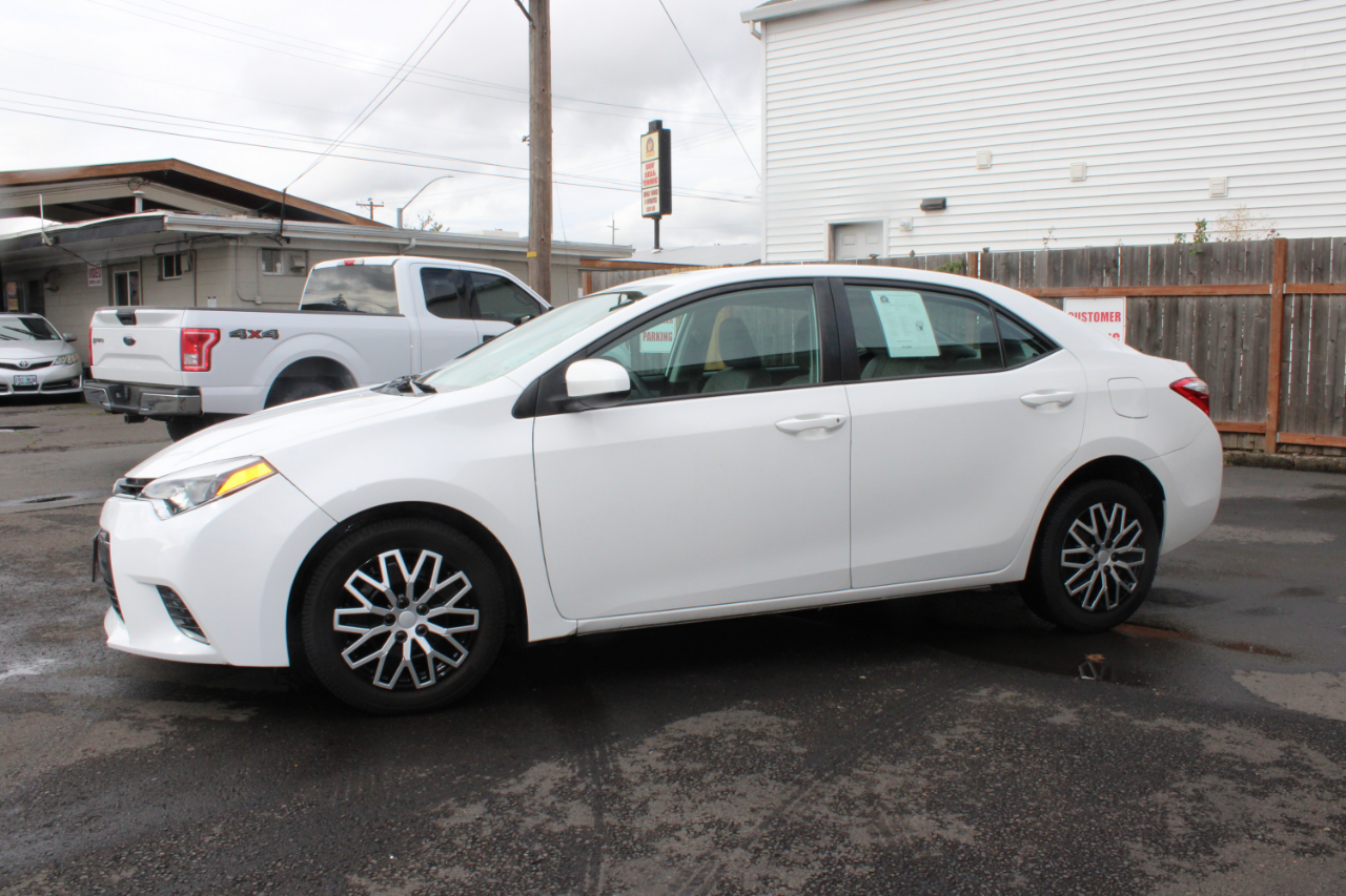 Zoom through the streets in this sleek White 2015 Toyota Corolla! With a fuel-efficient 1.8L I-4 engine under the hood, this car is perfect for your daily adventures. The front-wheel drive will keep you cruising smoothly, while the electric power-assist steering makes handling a breeze. This Corolla is not only stylish on the outside with its body-colored bumpers and LED daytime running headlamps but also comfortable on the inside with its spacious seating and modern technology features. Plus, with a Carfax report available, you can drive with peace of mind knowing the history of your new ride. Jump in, buckle up, and let the good times roll in this reliable and fun Toyota Corolla!