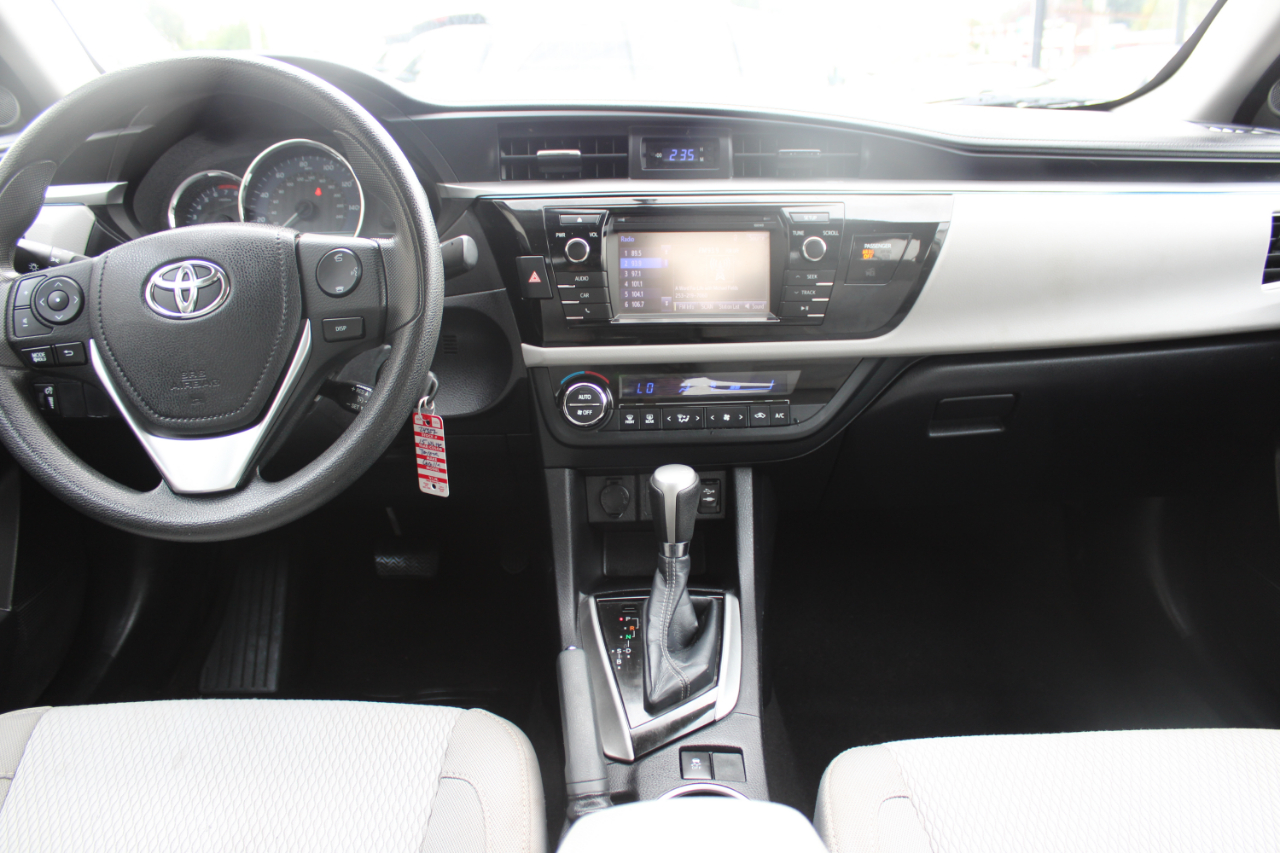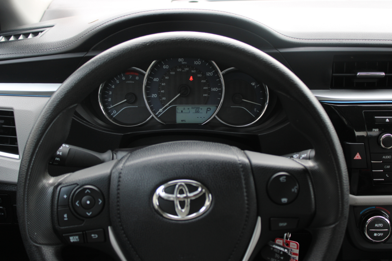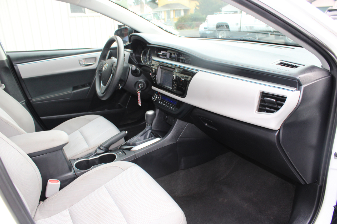 Zoom through the streets in this sleek White 2015 Toyota Corolla! With a fuel-efficient 1.8L I-4 engine under the hood, this car is perfect for your daily adventures. The front-wheel drive will keep you cruising smoothly, while the electric power-assist steering makes handling a breeze. This Corolla is not only stylish on the outside with its body-colored bumpers and LED daytime running headlamps but also comfortable on the inside with its spacious seating and modern technology features. Plus, with a Carfax report available, you can drive with peace of mind knowing the history of your new ride. Jump in, buckle up, and let the good times roll in this reliable and fun Toyota Corolla!