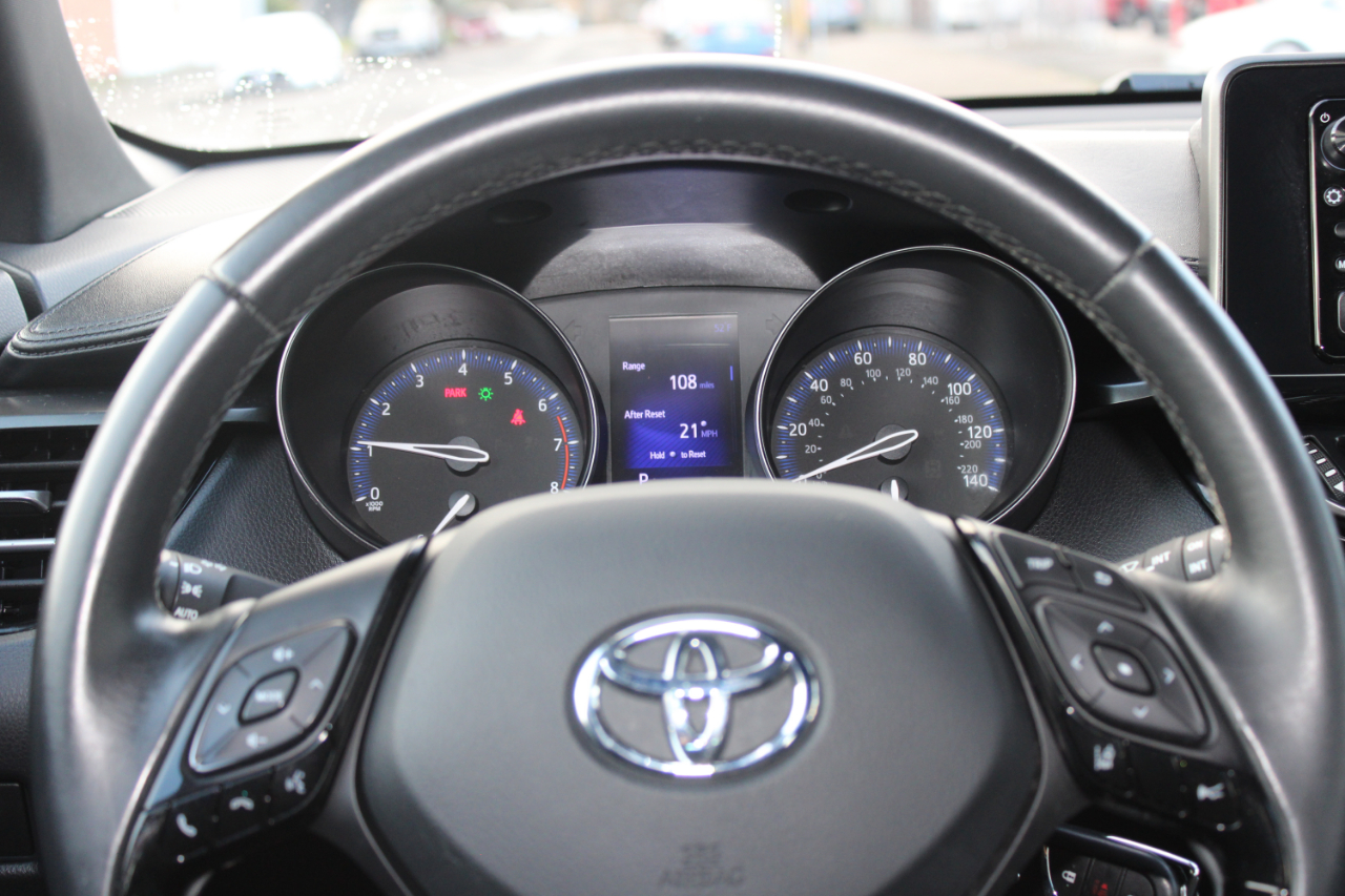 Around Texas hill country north of Austin, two things became clear about the way the Toyota C-HR gets around. First, the talk of tuning the suspension on European roads is more than talk, as the new C-HR offers a ride-and-handling combination that we usually associate with higher-end European brands. Comfortably firm around town and on the highway, the C-HR can carry a remarkable amount of its speed through a corner, with even a satisfying little bit of rotation from the rear. It’s fun, complemented by solid brakes and steering that makes up for its lack of feel with linear response and good weight. Sadly, it’s let down by the drivetrain, a 2.0-liter 4-cylinder with 144 horsepower routed through a continuously variable automatic transmission (CVT). At full throttle, the engine noisily struggles to move the 3,300-pound C-HR, and the transmission’s manual mode isn’t much help.